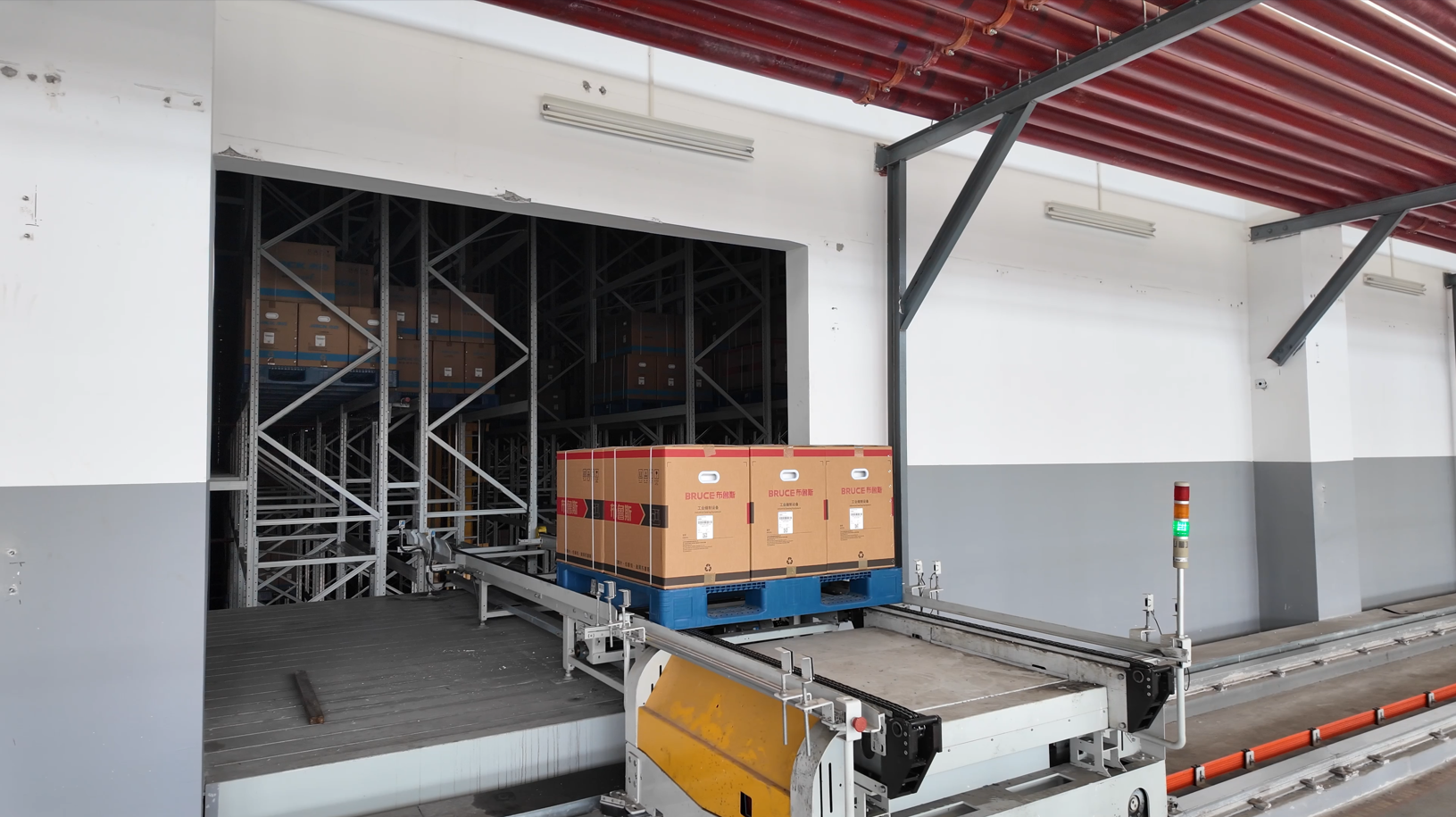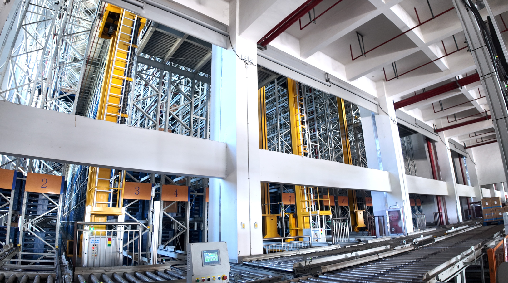 22米高的智能立体库与生产车间形成等高,13800㎡库区规划出48576个有效货位,同等土地实现传统仓储3倍以上的存储容量,让空间利用率实现质的飞跃。同等的高度也让仓库与装配车间无缝联通:二楼成品打包后可直接通过二楼入库口进入立库,一楼则通过辊筒式与皮带式运输线构建“入库即发货”的快速通道,彻底摆脱人工搬运的低效与误差困扰。