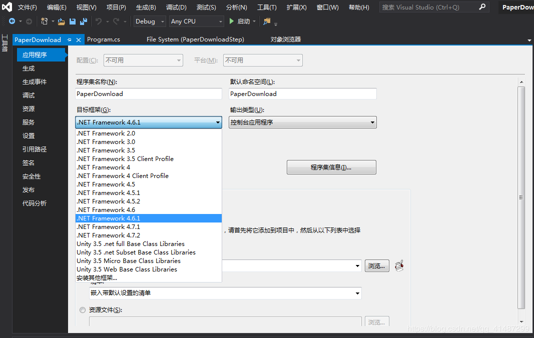 在这个目标框架里面选择.net Framework 4.6.1 就可以了。