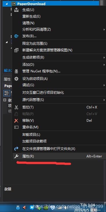 配置项目信息,这里打开属性窗口。注意:不是在项目上右键-属性,而是选中项目后点击属性窗口查看: