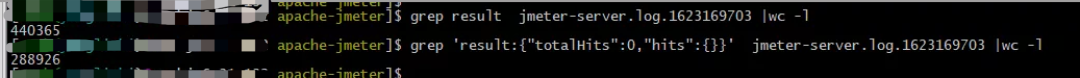 其中一台jmeter日志分析:结果中没有返回数据为288926 ,总数440365 没有返回数据的结果约占 65% 。