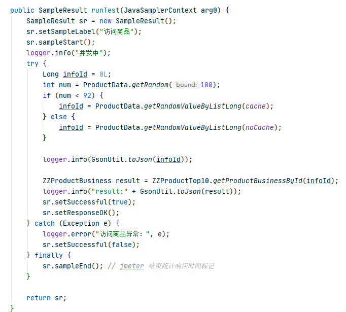 下面是jmeter执行的并发方法。通过随机数百分比占比来确定是否使用缓存数据,还是非缓存数据。