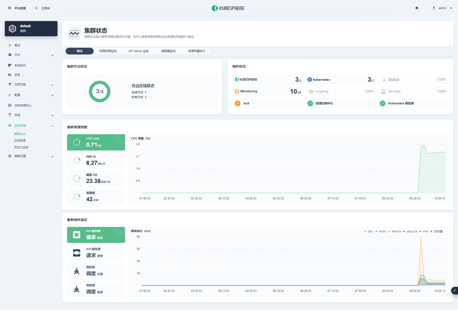 本文部署一套三节点,control-plane 和 worker 复用的 Kubernetes 集群。同时,部署只启用默认插件的 KubeSphere 管理平台。