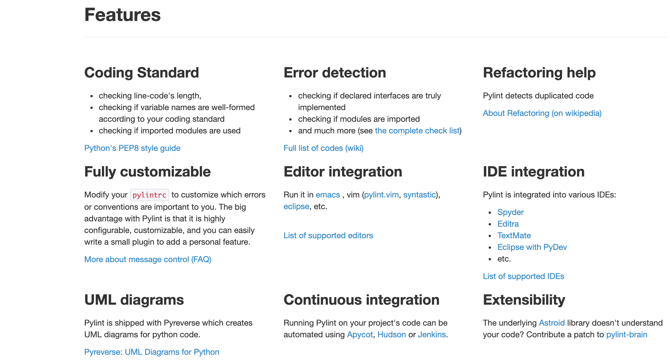 可参考:http://pylint.pycqa.org/en/latest/user_guide/output.html