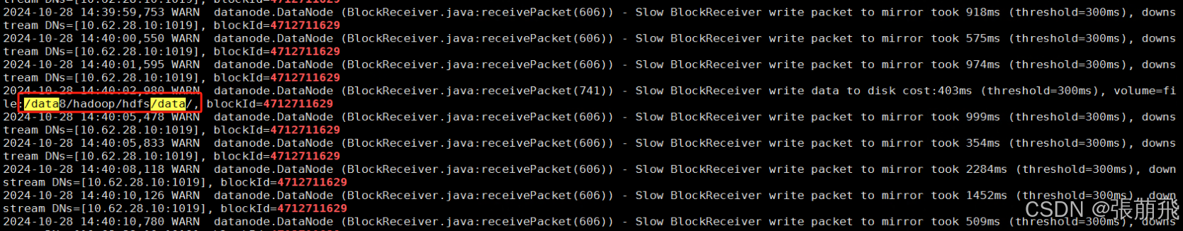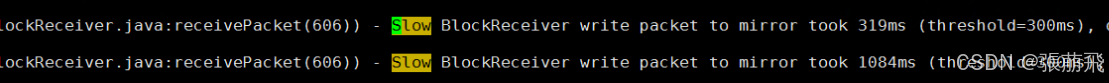 可以看到有Slow BlockReceiver的日志