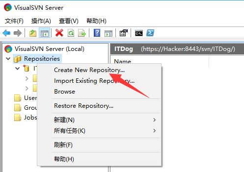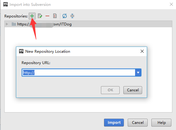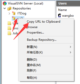点击加号,之后打开visualSVN,在创建好的repository右键,copy url to clipboard