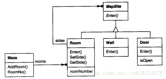 MazeGame::Createmaze方法:创建迷宫方法,这是下面所介绍的模式的最重要的接口处