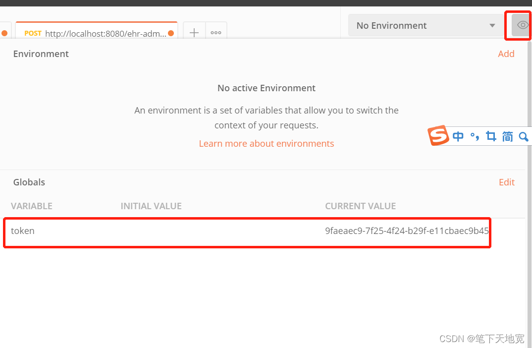还有就是这里,多了一个token字段,也就是全局变量,每次请求都会重新设置,下次你请求的时候,如果带上{{token}},这个全局变量就会被放到参数中,是不是so easy?: