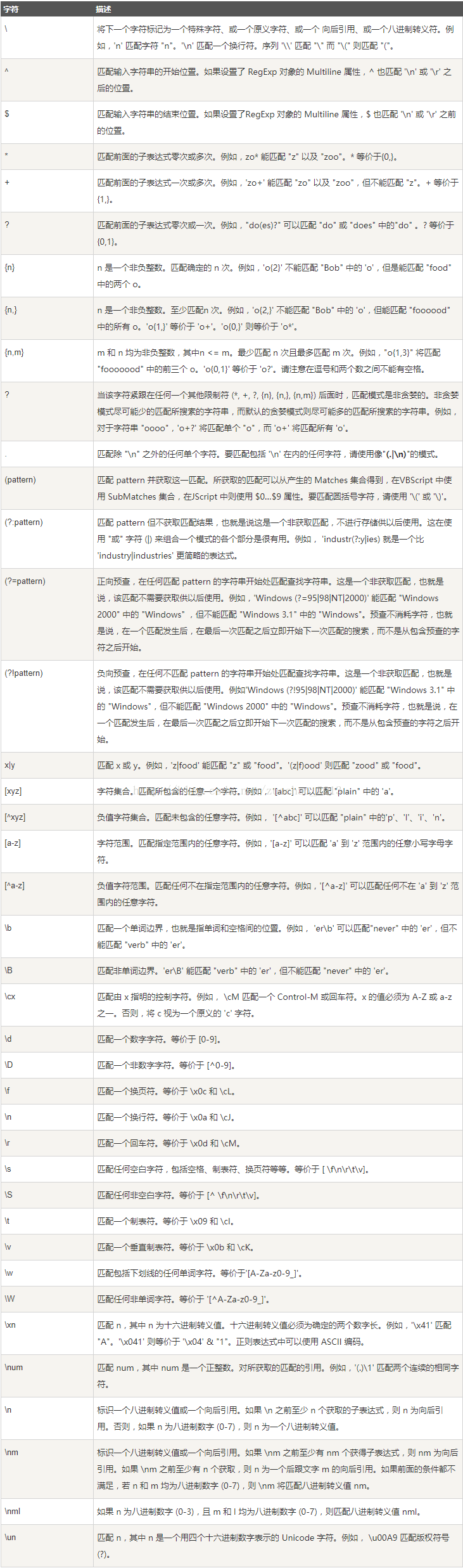 (1)普通字符:数字、大小写字母、下划线等