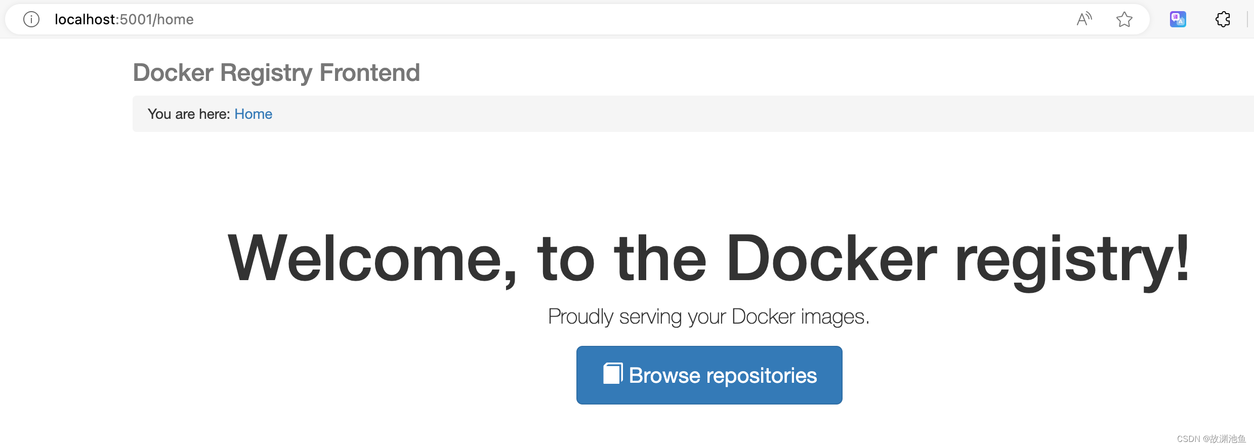 浏览器访问:http://localhost:5001/,可以查看私有库下的所有镜像