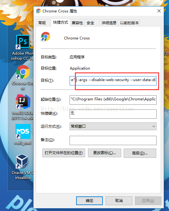 --args --disable-web-security --user-data-dir=D:\temp