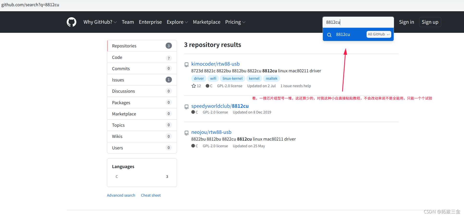 用的芯片序列也不全部相同,比如网上有前辈是8812cu,我的是8811cu,甚至有的是8811au,虽然是一个系列,但是在开源论坛下的同系列型号即使搜索的名称一样,但是由于上传用户不同,文件完整性也不同,所以有的不能用,不成功,有时间只能多试试,特别是我这种分不清的小白,纯属照猫画虎执行教程,碰巧气。