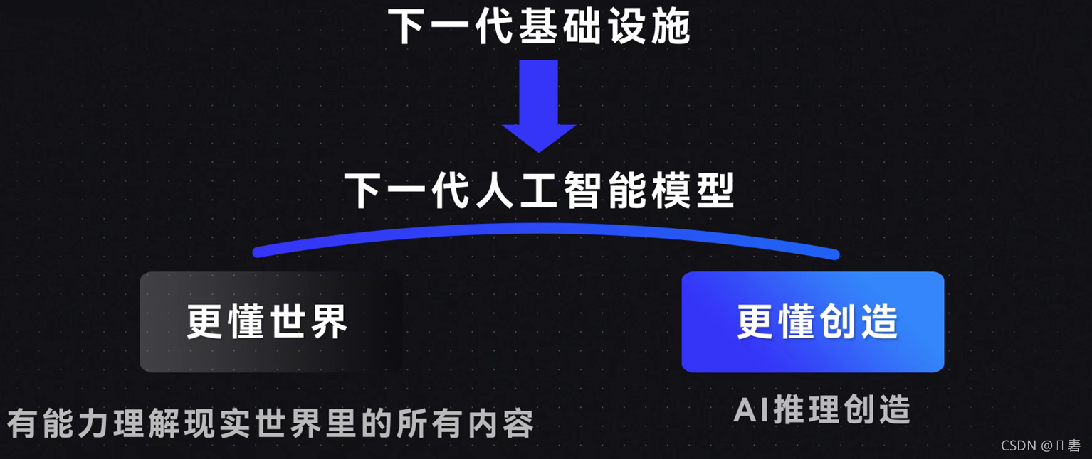 而把这两者结合起来的恰恰就是下一代基础设施,在它上面必须能够运行更加先进的下一代人工智能模型,什么是下一代人工智能呢?