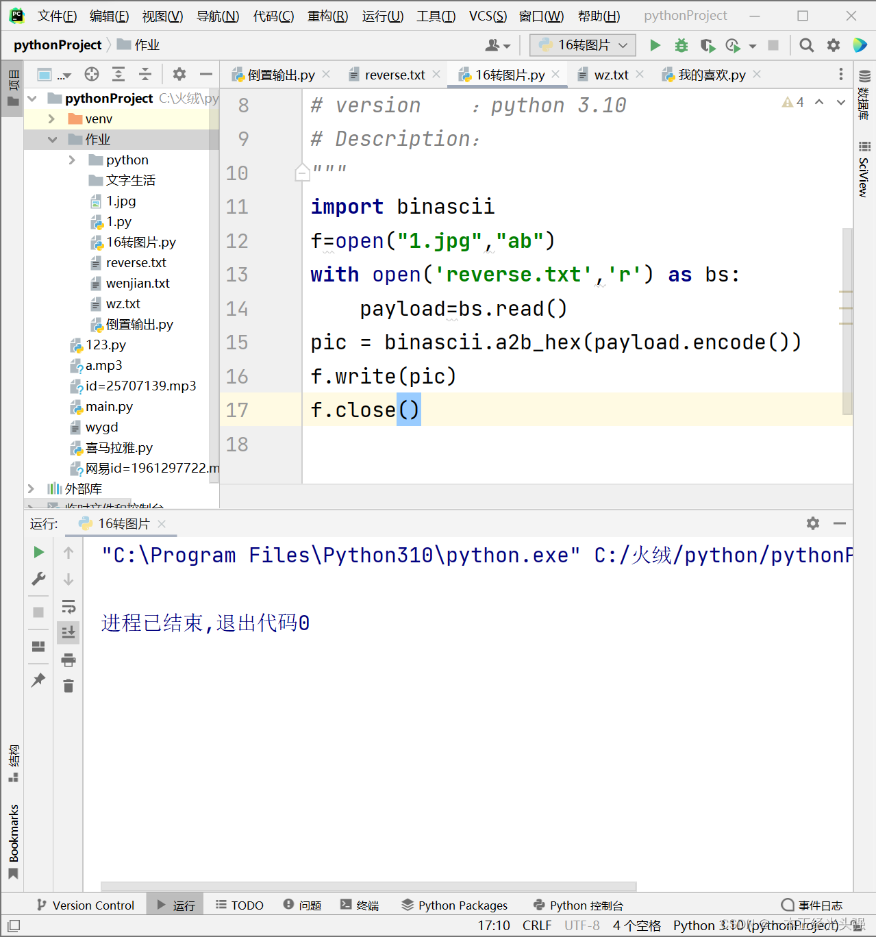使用python16进制转图片脚本