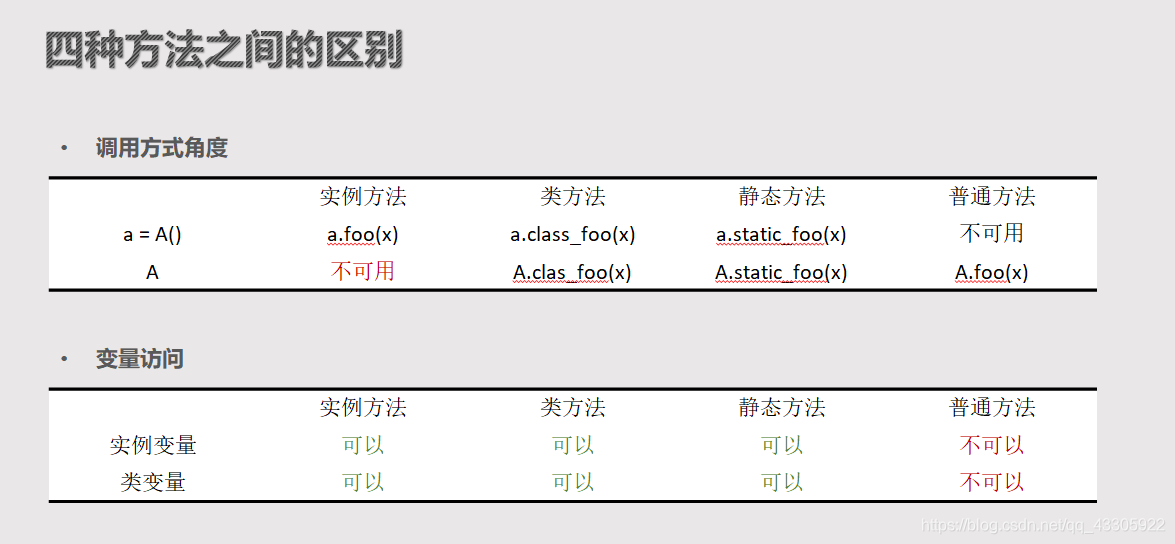 4、面向对象中的四种方法及变量(★)