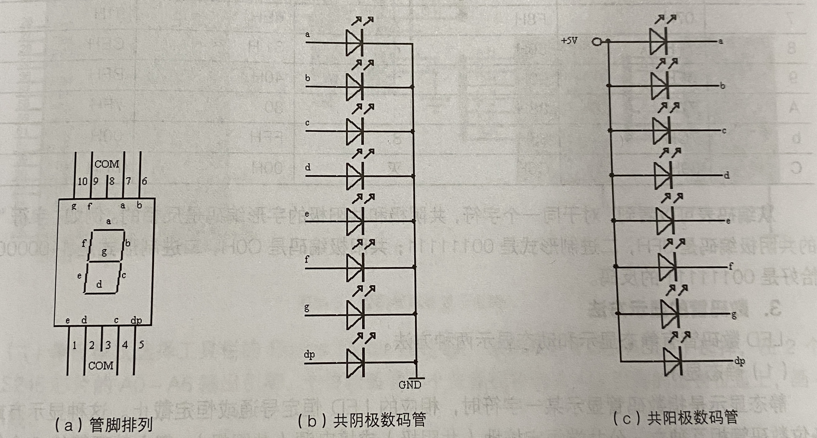 一 认识二级管常用的二级管分为两种1,(b)图共阴极结构:是把所有 LED 的阴极作为公共端(COM) 连起来,接低电平,通常接地。通过控制每一个 LED 的阳极电平使其发光或熄灭,阳极为高电平时LED 发光,为低电平时 LED熄灭。如显示数字0时,a、b、ad.e、t端为高电平,其他各端为低电平。2,(c)图共阳极结构:是把所有 LED 的阳极作为公共端(COM) 连起来,接高电平,通常接电源(如+5V )。通过控制每一 个LED 的阴极电平使其发光或熄灭,阴极为低电平时LED 发光,为高电平