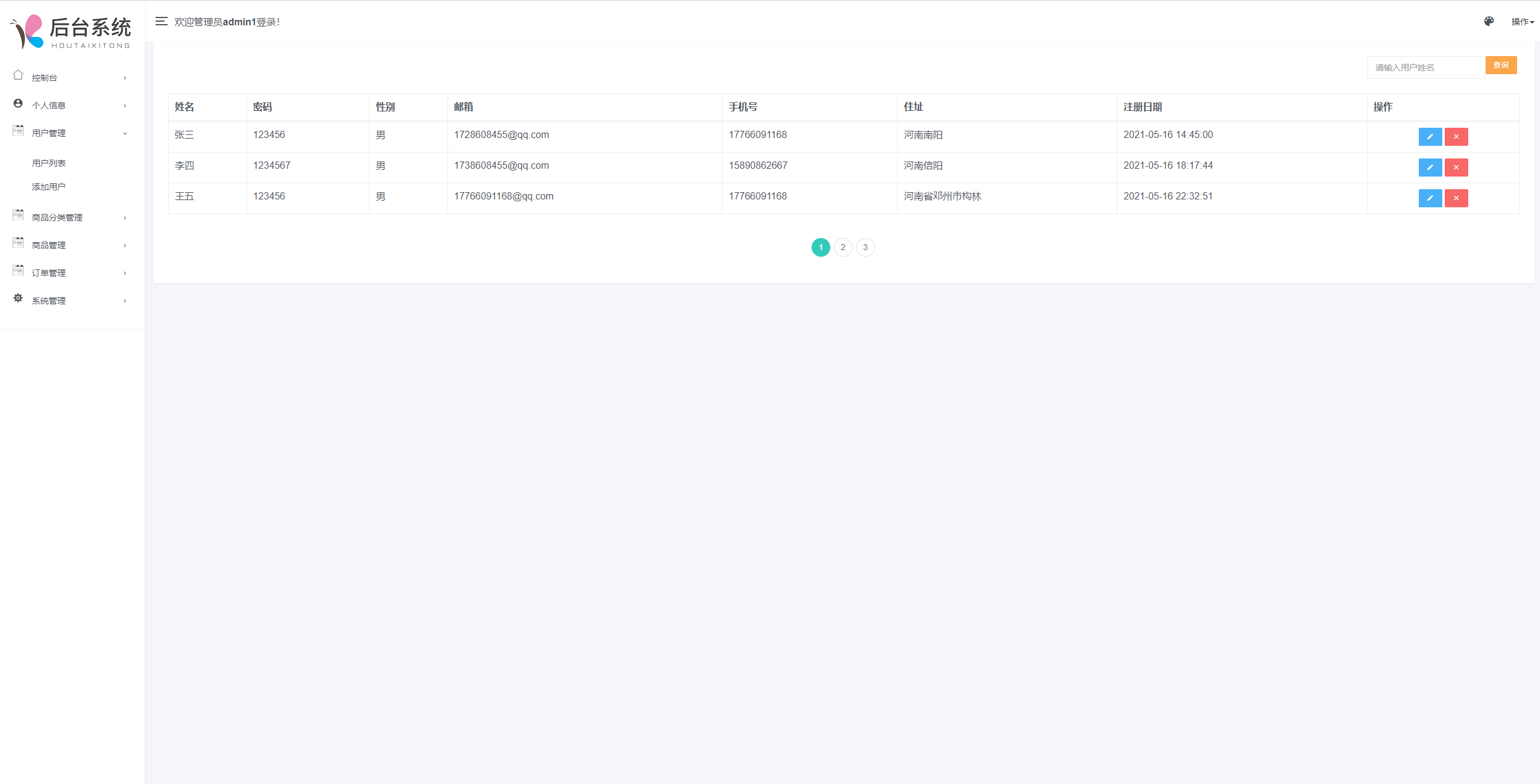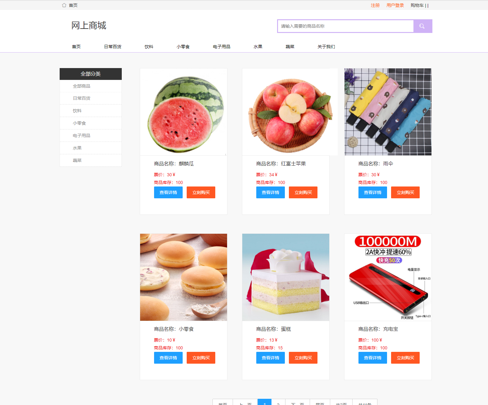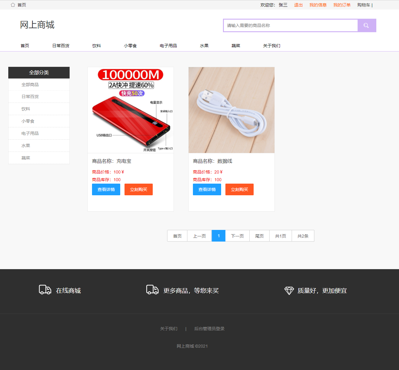 主要功能:普通用户注册、登录商城后,可以浏览商品、下单到购物车结算购买,能够查看我的订单,修改个人信息等。管理员验证码登录后,对商品信息、商品分类信息、用户信息、订单信息进行综合性管理。