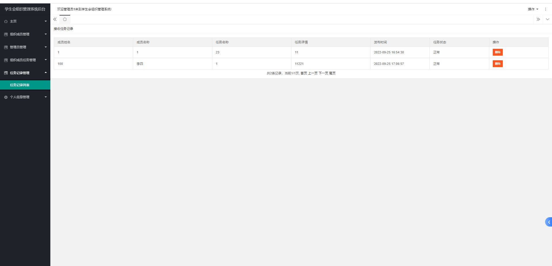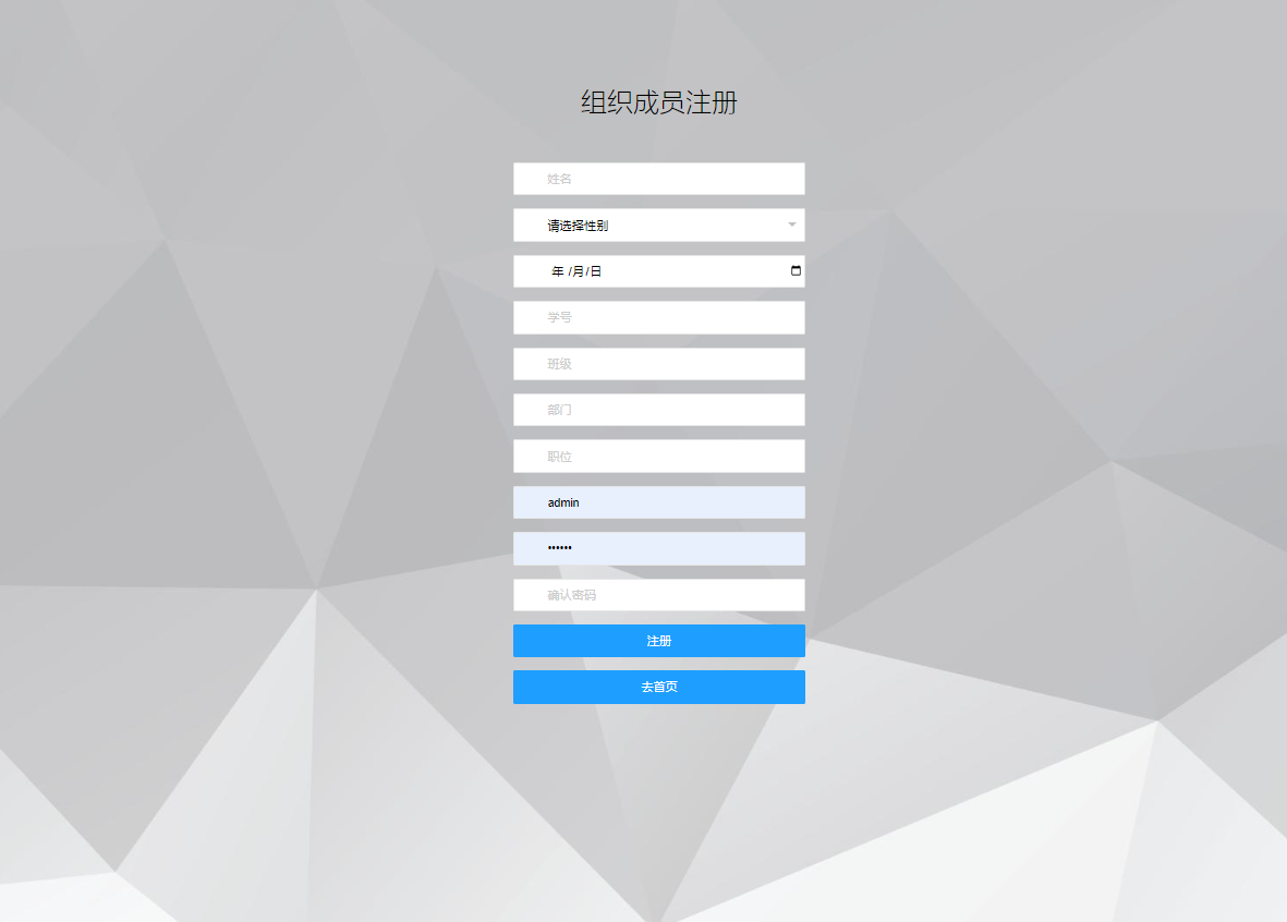 主要功能:注册成员端主要有注册、登录、个人信息管理、查看成员信息、任务信息、接受任务、查看我的记录、退出等功能。 管理员端主要功能有管理员登录、注册,管理员管理、成员信息列表,任务列表,组织管理、任务管理、修改密码、退出等功能。