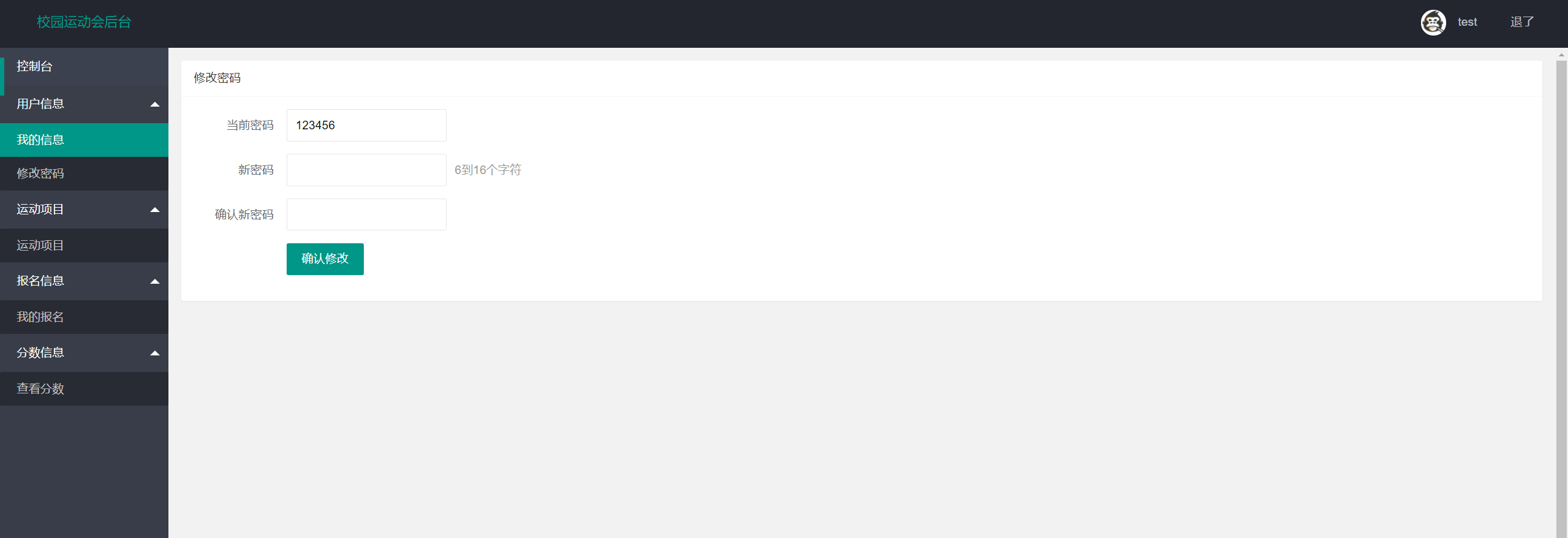 学生登录后可以查看修改个人信息、查看运动项目、预约报名运动项目、查看自己的成绩。