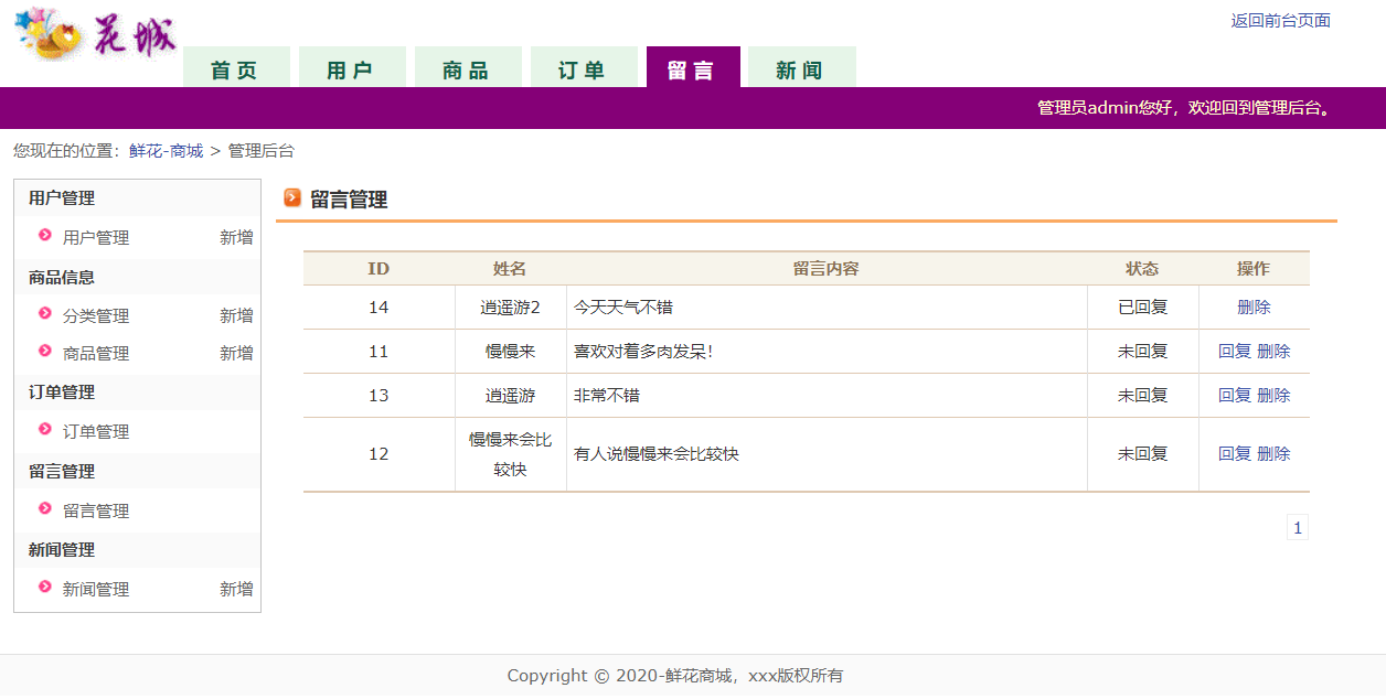 管理员留言管理