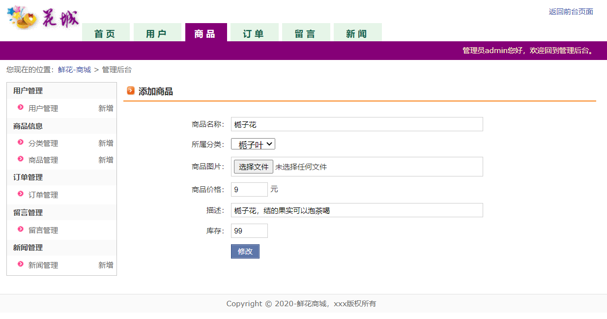 管理员添加商品