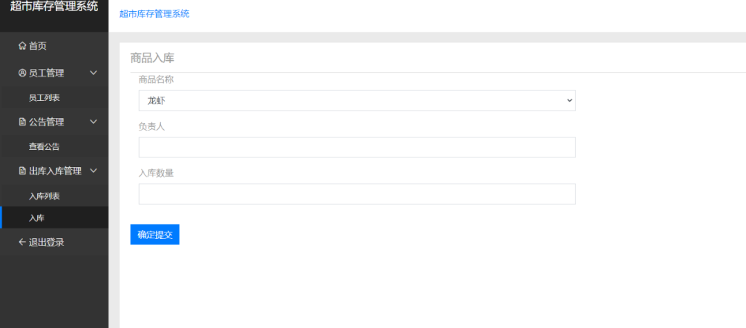 项目简介:本系统主要是一款超市的入库人员、出库人员、对商品的出入库进行信息化管理的一款系统,能够记录商品的出入库情况。