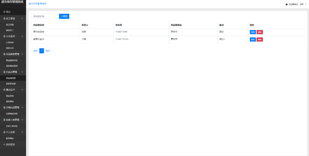 供应商管理:增删改查