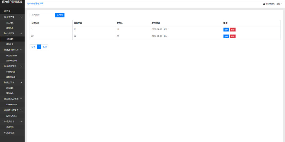 公告管理:增删改查