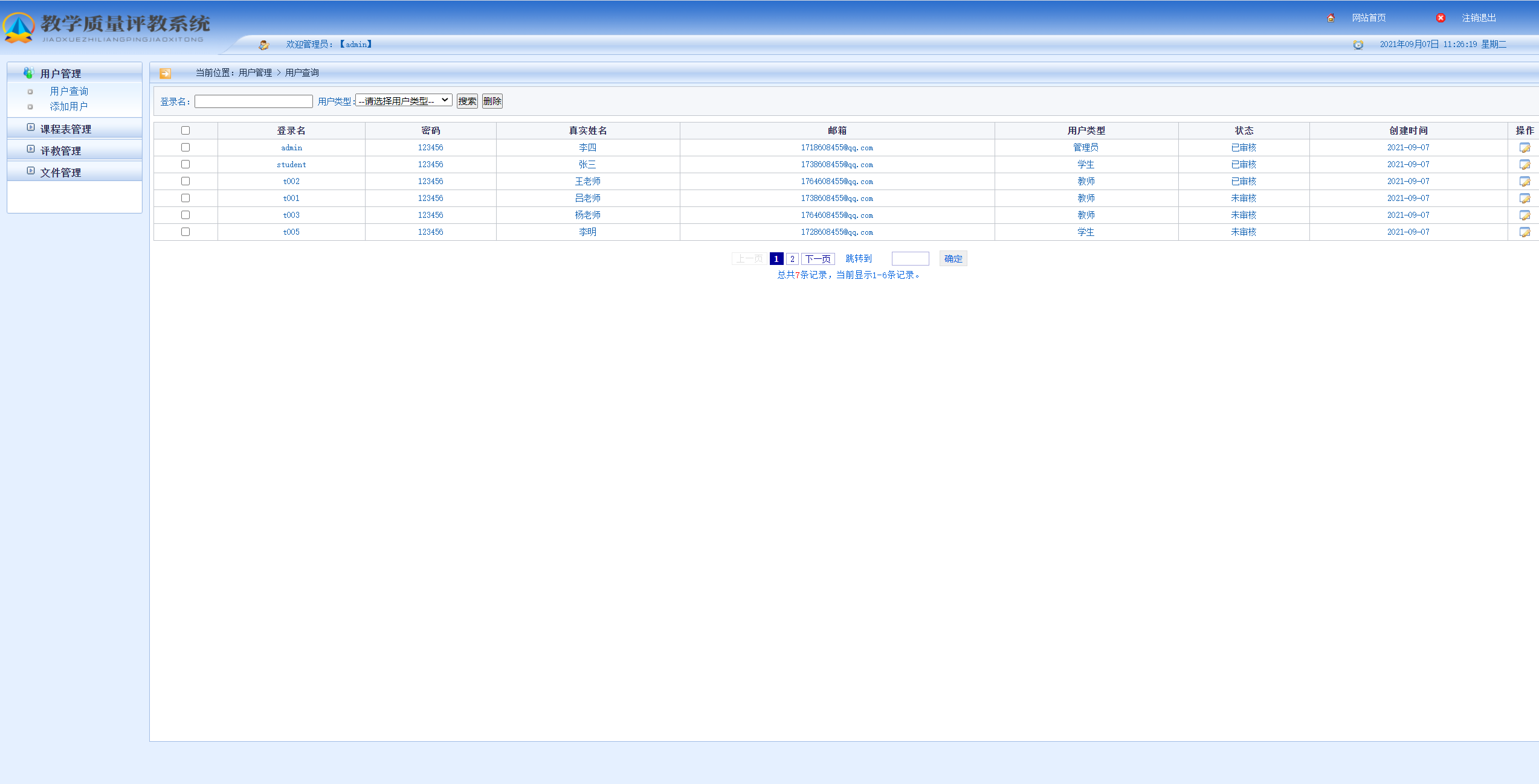 项目描述:本系统主要是对教师的教学质量进行打分和评价进行考核,管理员对用户、文件、课程表、评教进行信息化管理。