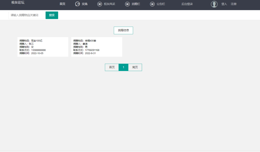 项目简介:本系统分为前台和后台、实现校友论坛进行交流、校友信息、捐赠信息、公告信息、评论帖子等功能。