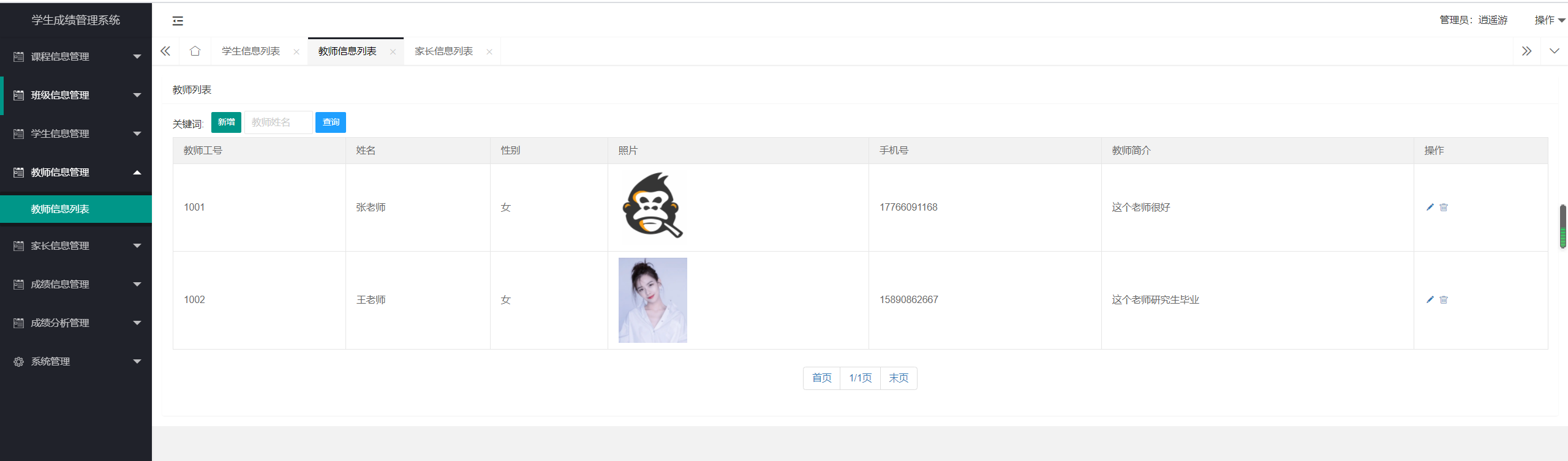 教师端主要有登录、学生信息管理、成绩信息管理、成绩分析管理、个人信息修改等功能。
