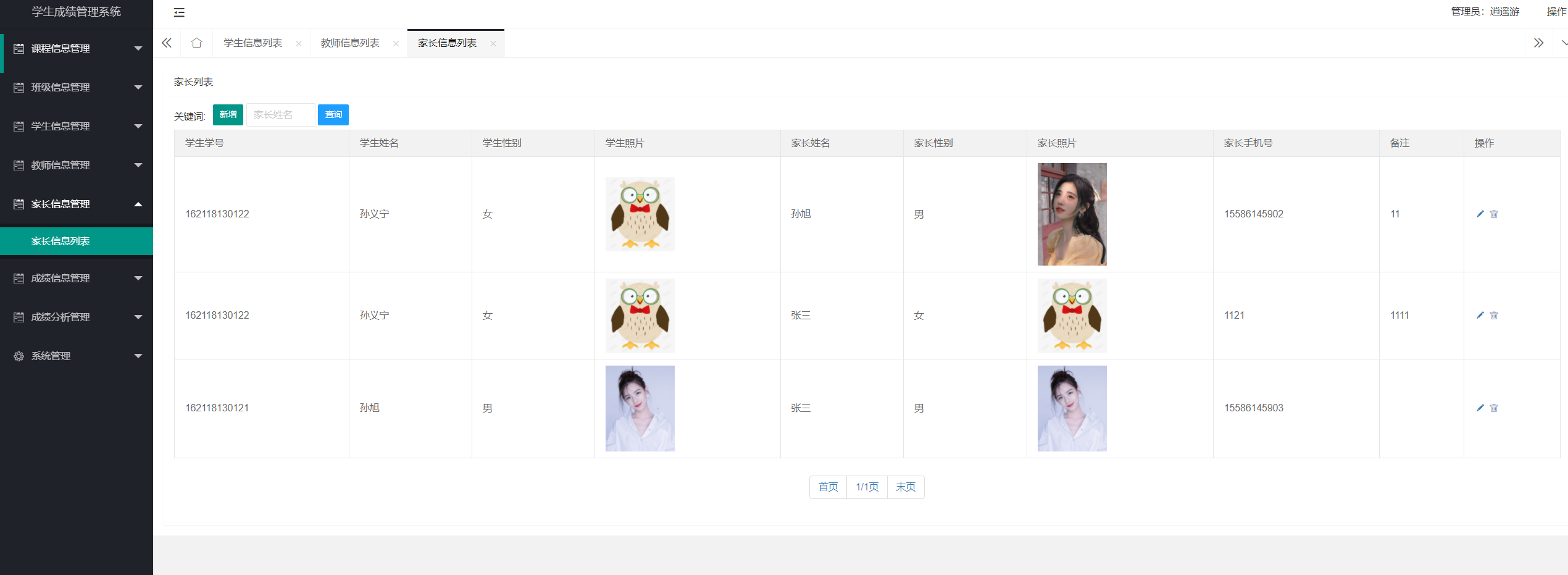 项目简介:本系统主要有四个角色,主要是对学生信息、课程信息、成绩信息、教师信息、家长信息、成绩分析统计等功能。