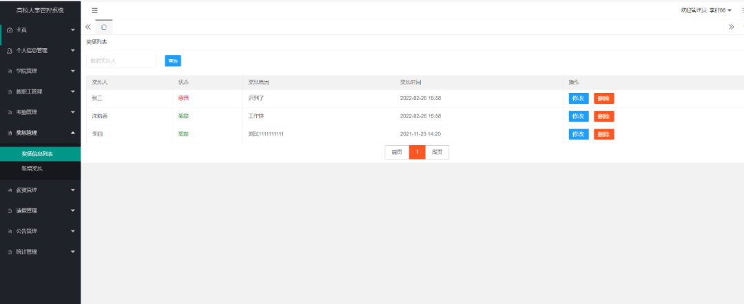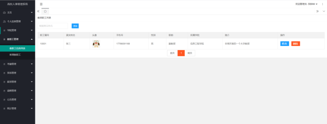 项目简介:本系统是一款管理高校人事信息的系统,主要是对教职工、奖惩、考勤、薪资、请假、公告等模块进行管理,分为教职工和管理员两个角色。