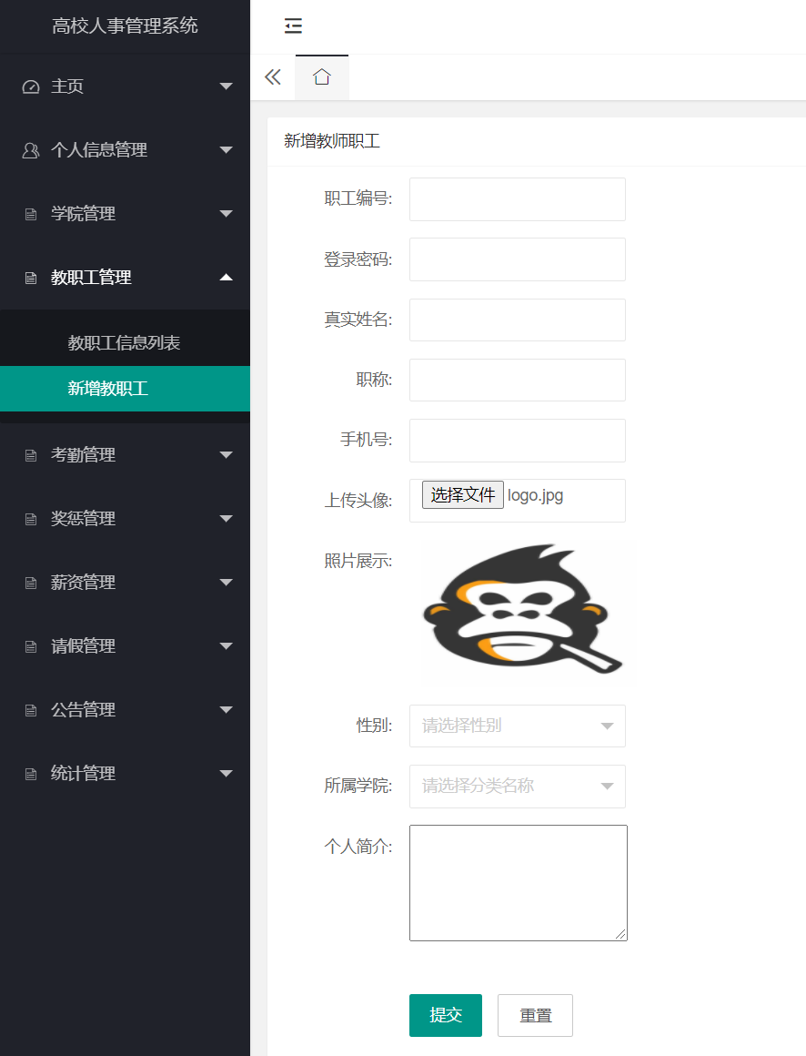 项目名称:基于JSP+Servlet的高校人事管理系统