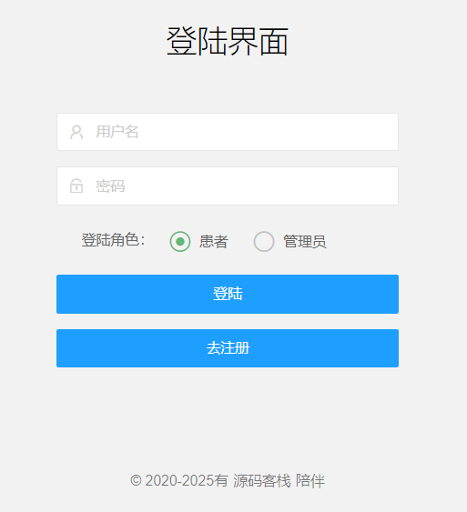 用户类型:双角色角色(患者、管理员[医生])
