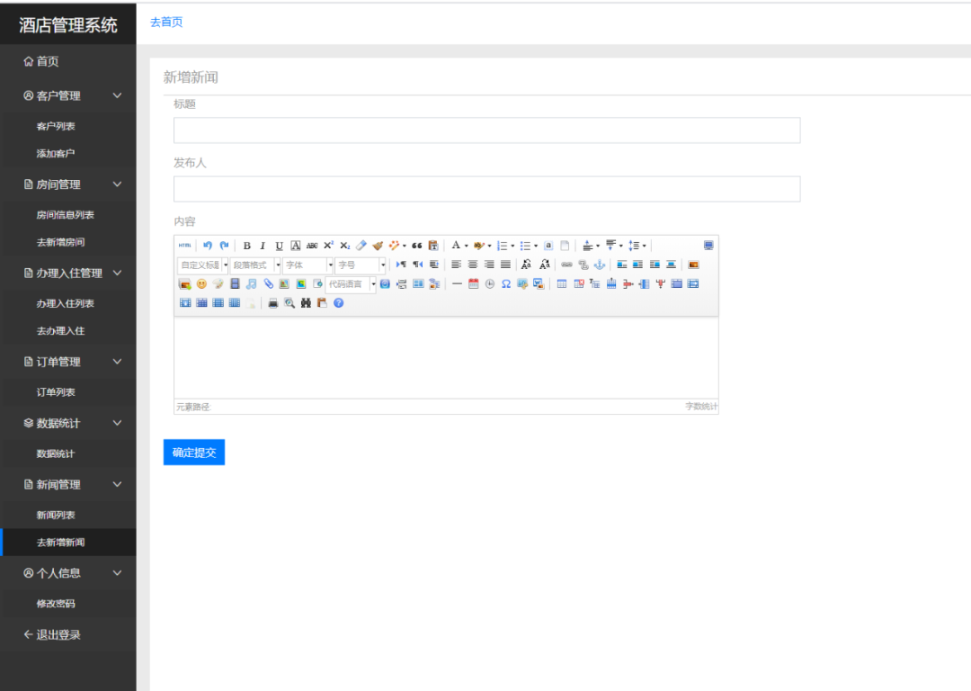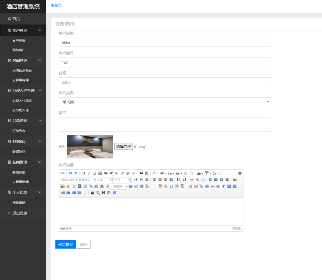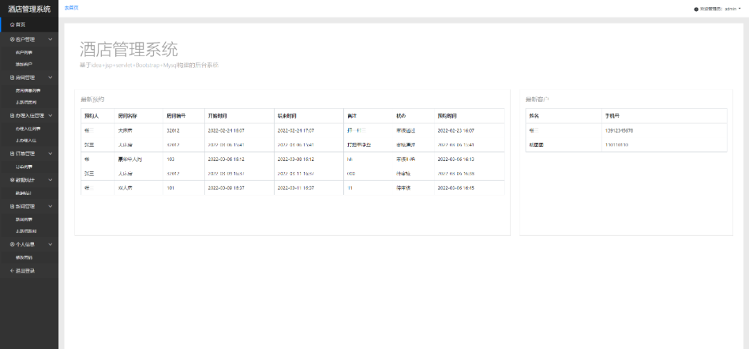项目简介:本系统主要分为前台网站和后台,前台主要是面向广大用户的,用户可以在网站进行预定酒店,管理员在后台对用户信息、房间信息、预定信息、订单信息以及统计信息进行管理等。