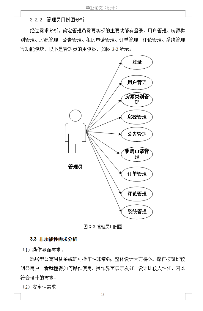 而管理员端主要有登录、用户管理、房源类别、房源管理、租房申请管理、订单管理、评价管理、统计管理、以及系统管理等功能模块。
