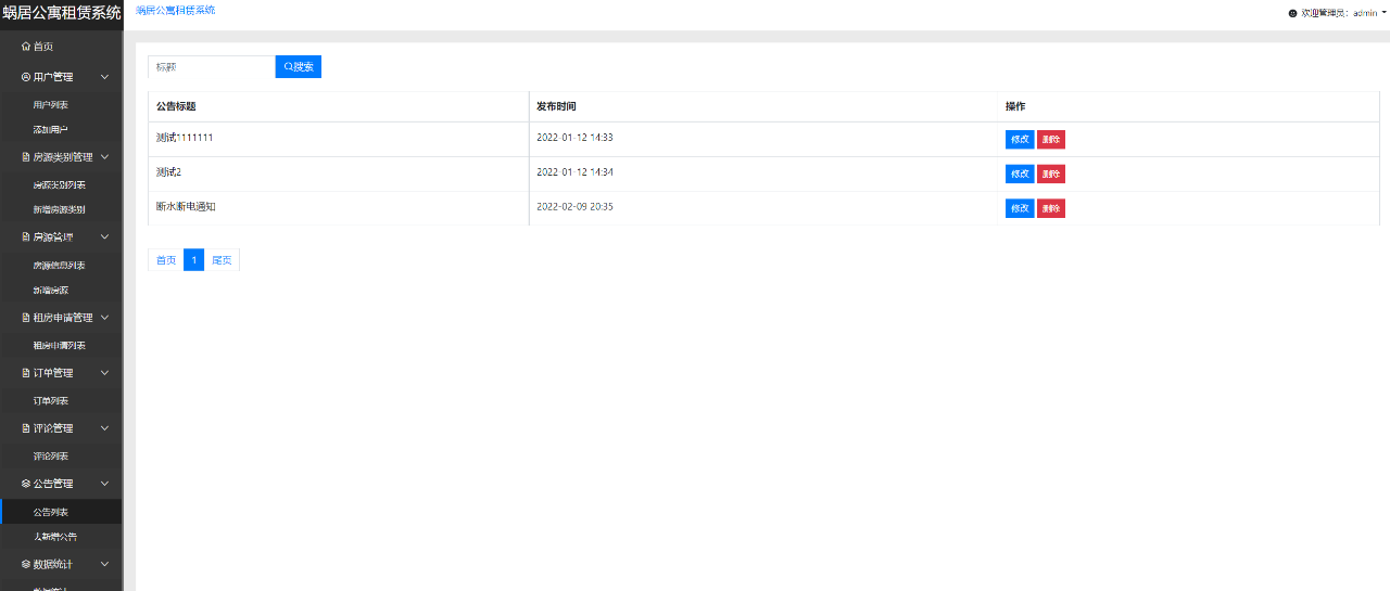项目简介:本系统主要是一款可以提供公寓房源给用户进行租赁的一款系统,管理员发布公寓房间,在平台展示,用户注册之后可以申请进行租赁,同意之后可以付款进行租赁。