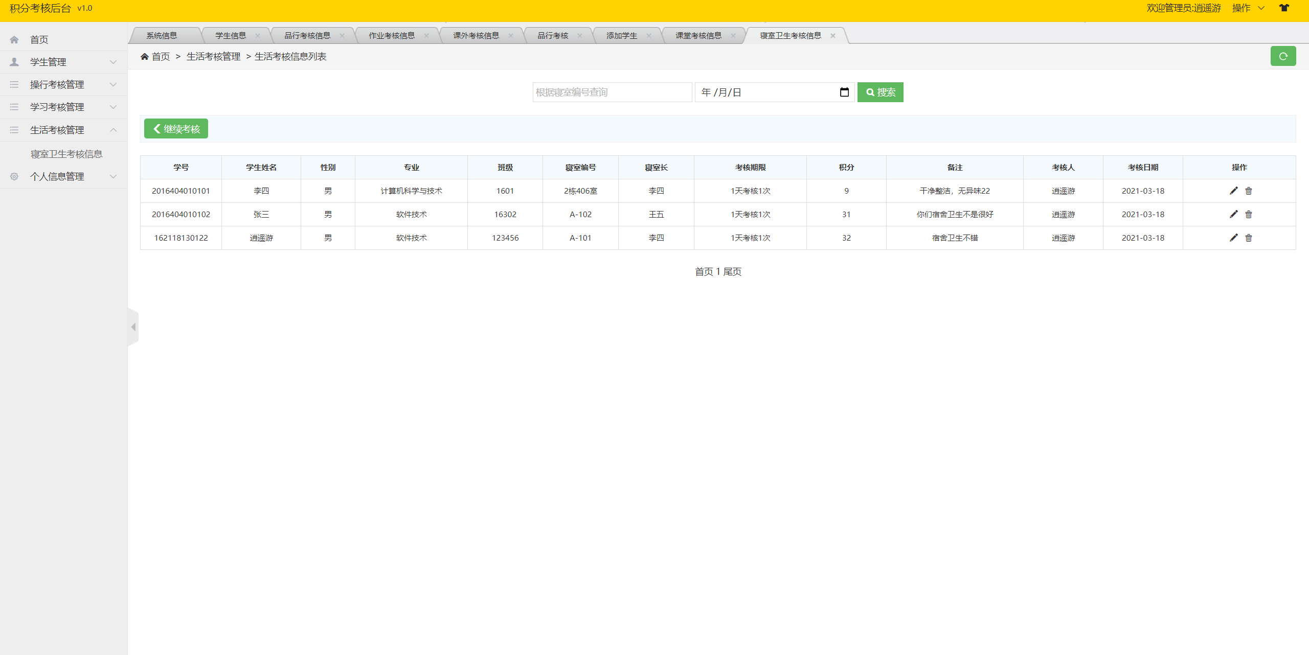管理员-寝室卫生考核管理