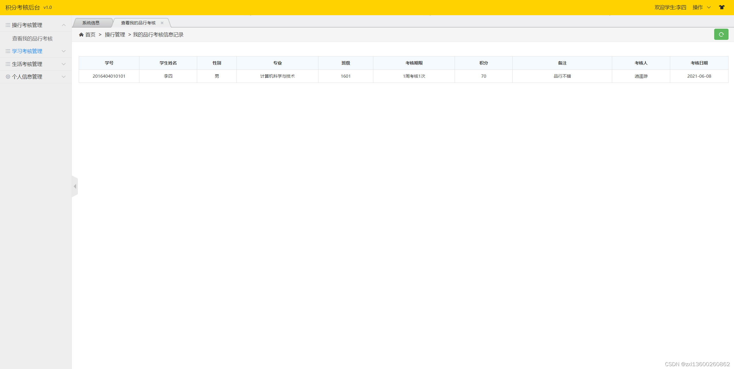 学生-查看我的品行考核