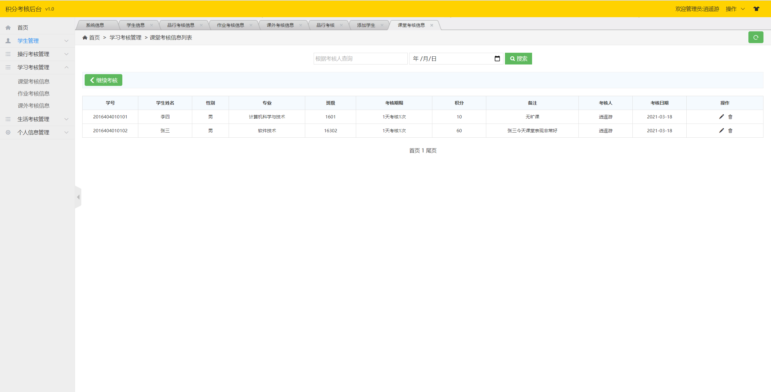 管理员-课堂考核管理