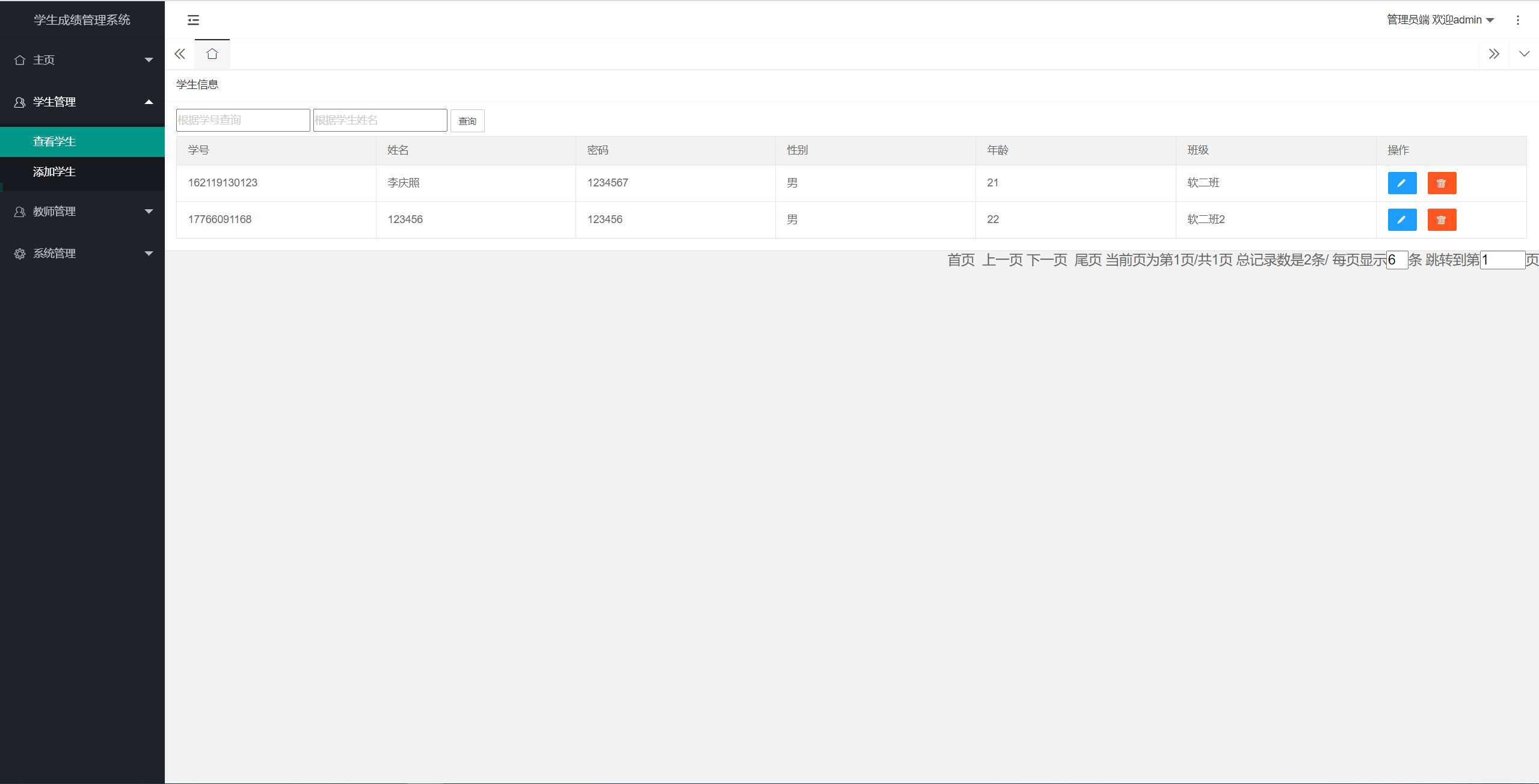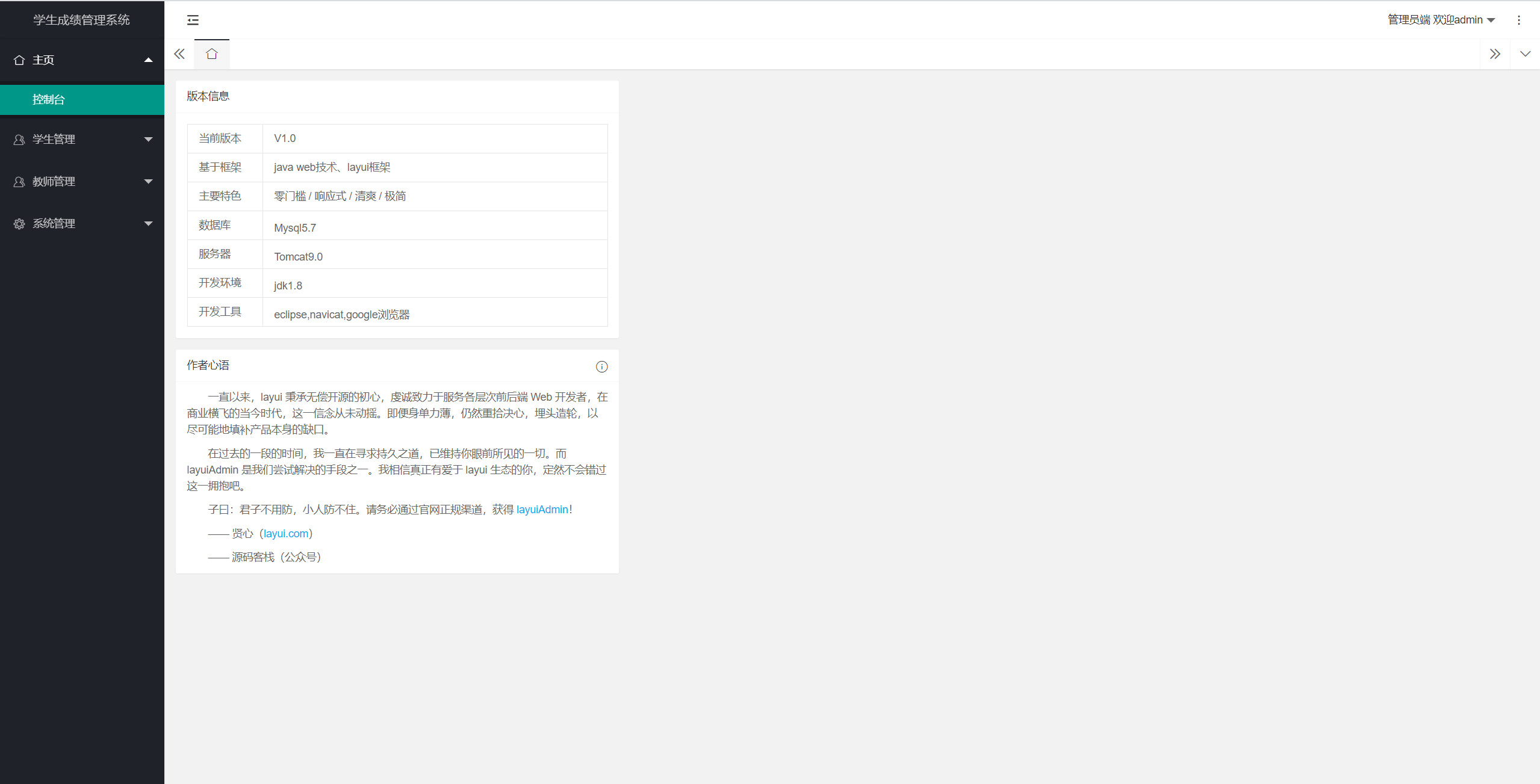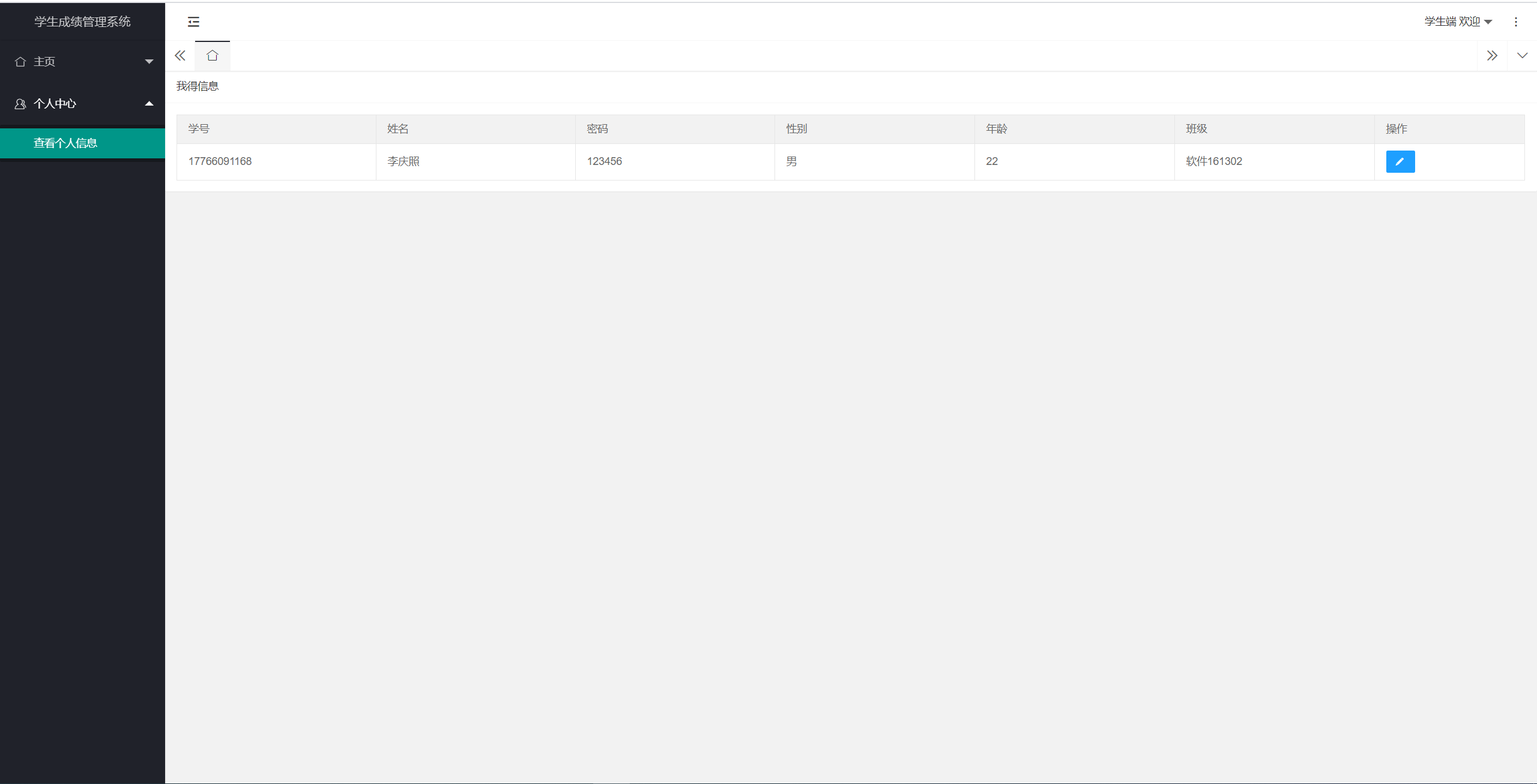 功能描述:本程序有三个角色,学生、教师、管理员,学生登陆以后可以查看、修改个人信息,教师登陆以后可以对学生任务成绩进行管理、管理员对学生和教师模块进行管理。