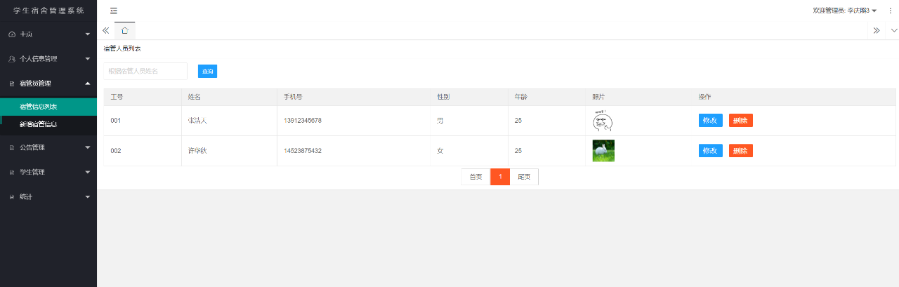 宿管人员管理