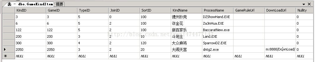 这个表的内容是关系到客户端进房间的游戏列表,DownLoadUrl是客户端下载游戏所链接的地址。