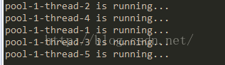 线程池的线程数量固定为3,首先创建3个线程去执行,执行完后变为空闲状态,接着再执行其他等待任务,运行截图: