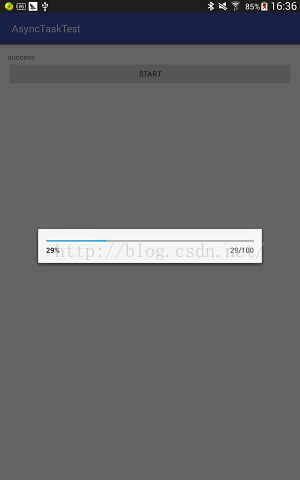 点击按钮后实例化AsyncTask并且执行execute()方法。效果截图如下,