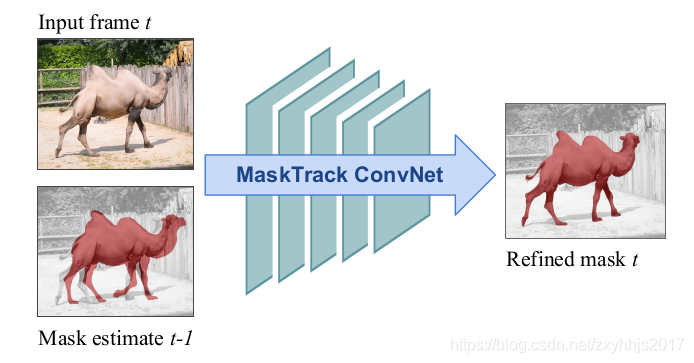 5.非常关键的一点就是使用在线和离线两种训练方式,离线就是使用变换和粗化技术大概估计一个mask,在线就是根据以前的跟踪任务(引用12, 32)引入到视频目标分割。
