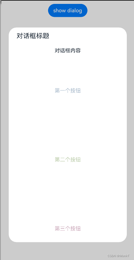 - buttons:对话框上的按钮,至少配置一个,最多三个。