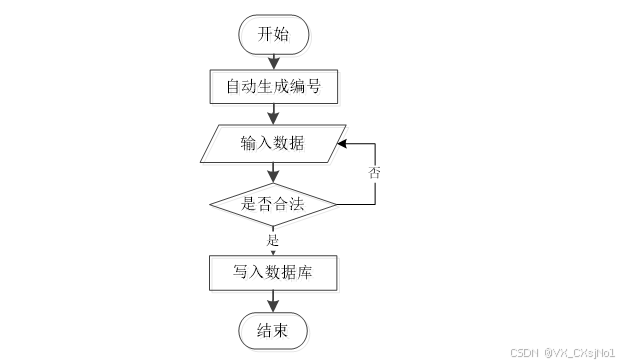 对于汽车租赁系统,需要随时添加所需要的数据信息,对于用户添加信息,需要根据添加界面,根据选框的内容进行填写所要添加的数据信息,信息输入完成后判断数据信息是否符合要求,符合要求则添加完成,用户所添加的信息不符合要求,则需要返回到第一步,重新输入数据信息,再进行判断操作,如图3-2所示。