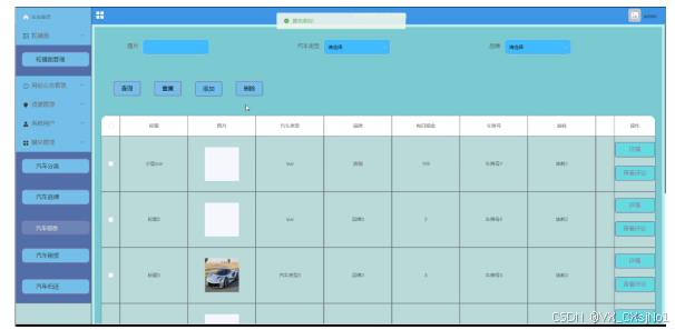 汽车租赁管理界面如图所示。