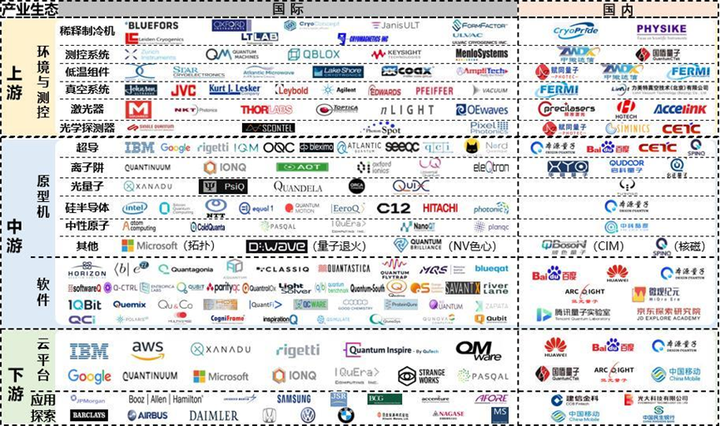 量子计算产业上游主要包含环境支撑系统、 测控系统、 各类关键设备组件以及元器件等, 是研制量子计算原型机的必要保障, 目前由于技术路线未收敛、 硬件研制个性化需求多等原因, 上游供应链存在碎片化问题, 逐一突破攻关存在难度, 一定程度上限制了上游企业的发展。